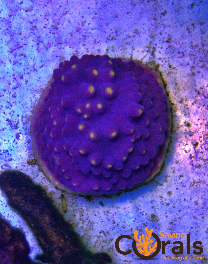 LA Lakers Scroll coral is one of the most sought after. It has a deep purple disclike base and yellow polyps on top that add to its aesthetic.