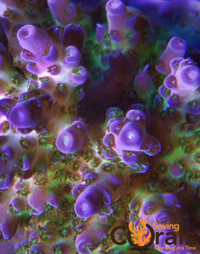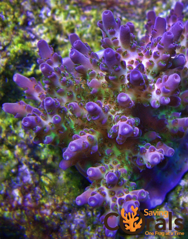 SC Hypnotic is a coral with branching structure, it has a wonderful Violet base and Green polyps. The heavenly contrast of violet and green makes this coral one of the best.