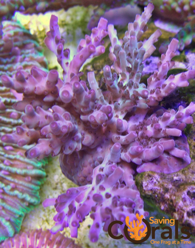 SC Purple Fusion is a coral that has branching structure. Its has pink base and violet polyps. The pink hue of this coral is truly one of the best.
