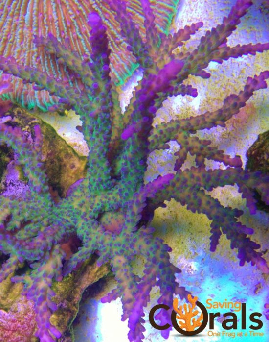 Can youTaste the Rainbow? This greenish-pink – orange base with violet tips and polyps, almost looking like candy sprinkled over. It really brings out the child in you.